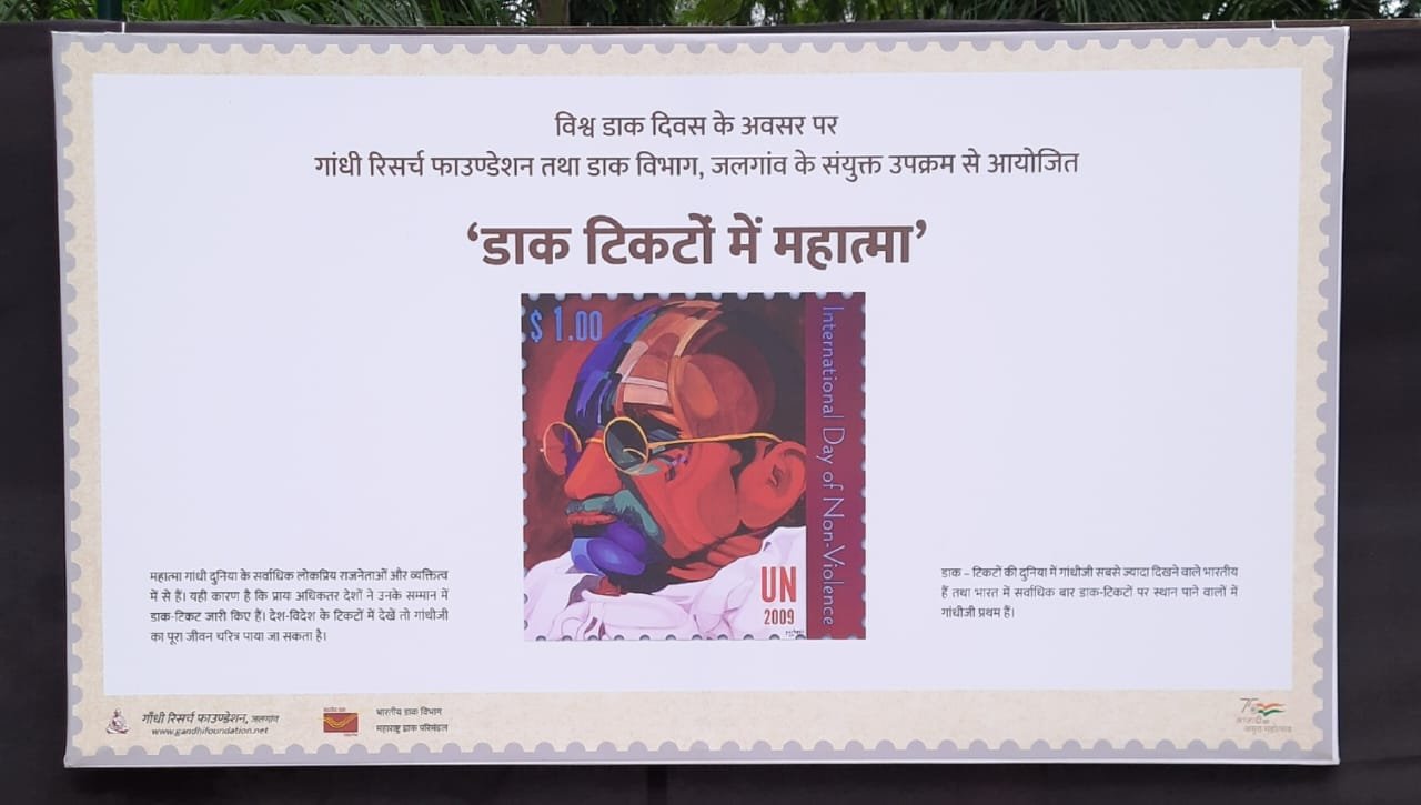 पोस्टाच्या स्टॅम्पवर महात्मा गांधीजींच्या वेगवेगळ्या विषयांवर स्टॅम्प निघालेली आहेत. जगात महात्मा गांधीजी हे एकमेव व्यक्ती आहेत की ज्यांचे इतक्या देशांमध्ये तिकिटे आहेत. महात्मा गांधीजींच्या टपाल तिकिटांचे जनसामान्यांसाठी प्रदर्शन आयोजित केले आहे. देश-विदेशातील तिकिटे पाहिली तर गांधीजींचे संपूर्ण जीवन चरित्र पहायची संधी या प्रदर्शनाच्या माध्यमातून जळगावकरांना उपलब्ध करून देण्यात आली आहे. ‘डाक टिकटों में महात्मा’ या प्रदर्शनाचा लाभ घ्यावा असे आवाहन गांधी रिसर्च फाऊंडेशनतर्फे करण्यात आले आहे.