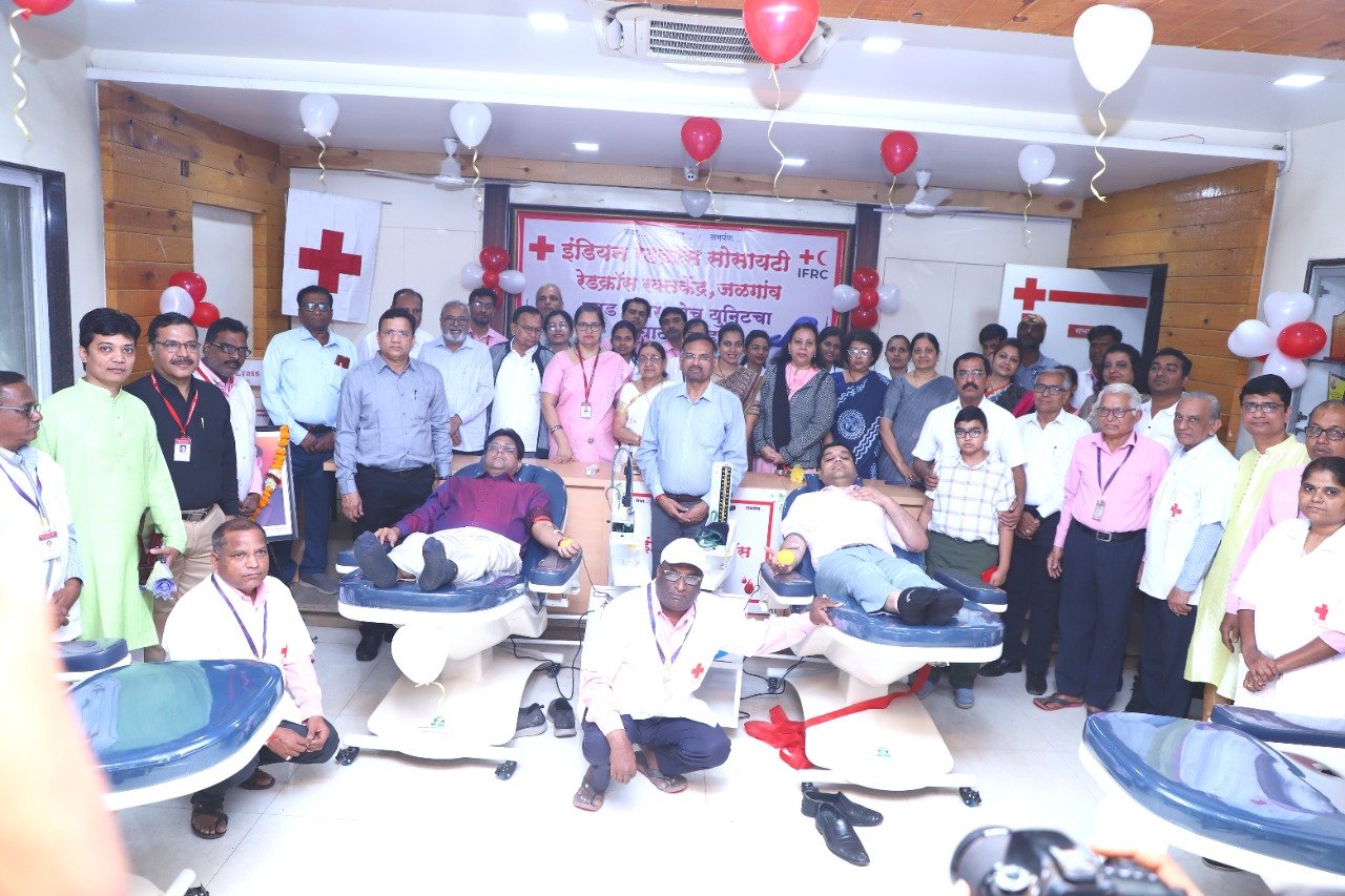 जळगाव- रेडक्रॉस राष्ट्रीय शाखा, नवी दिल्ली आणि इंटरनॅशनल फेडरेशन ऑफ रेडक्रीसेंट यांच्या योगदानाने जळगाव रेडक्रॉस रक्तकेंद्राला देणगी स्वरुपात प्राप्त झालेल्या अद्ययावत सहा ब्लड डोनर कोच युनिटचा उद्घाटन सोहळा आज जिल्हाधिकारी तथा रेडक्रॉस पद्सिध्द अध्यक्ष मा.श्री.अमन मित्तल आणि जिल्हा शल्य चिकित्सक डॉ. किरण पाटील यांच्या उत्स्फूर्त रक्तदानाने संपन्न झाला. या प्रसंगी शासकीय वैद्यकीय महाविद्यालयाच्या प्रभारी अधिष्ठाता डॉ.योगिता बाविस्कर, रेडक्रॉसचे उपाध्यक्ष गनी मेमन, चेअरमन विनोद बियाणी, रक्तकेंद्र चेअरमन डॉ. प्रसन्नकुमार रेदासनी, कार्यकारिणी सदस्य श्री.सुभाष सांखला, श्री. विजय पाटील, सौ. पुष्पाताई भंडारी, डॉ. अपर्णा मकासरे, सौ.शांताताई वाणी हे उपस्थित होते.*