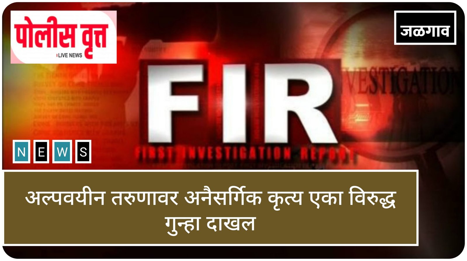 (जळगाव- पोलीस वृत्त ऑनलाईन) जळगाव तालुक्यातील एका गावात राहणाऱ्या १६ वर्षीय अल्पवयीन मुलावर अनैसर्गिक कृत्य केल्याचा खळबळजनक प्रकार घडला आहे. या संदर्भात रामानंदनगर पो.स्टे ला एका विरुद्ध गुन्हा दाखल करण्यात आला आहे. या संदर्भात पोलिसांनी दिलेली माहिती अशी की, जळगाव (jalgaon) तालुक्यातील एका गावात १६ वर्षीय अल्पवयीन मुलगा हा वास्तव्याला आहे. त्याला एका मोबाईल (mobail) क्रमांकवरील गुड्डू (guddu)नावाच्या अंदाजे २८ वर्षीय तरुणाने १२ जानेवारी रोजी रात्री ११.३० वाजता जळगाव(jalgaon) शहरात बोलवून घेतले. यानंतर त्याने जळगाव शहरातील एका भागात नेऊन त्याच्यावर अनैसर्गिक (unnatutal)कृत्य केले आहे.