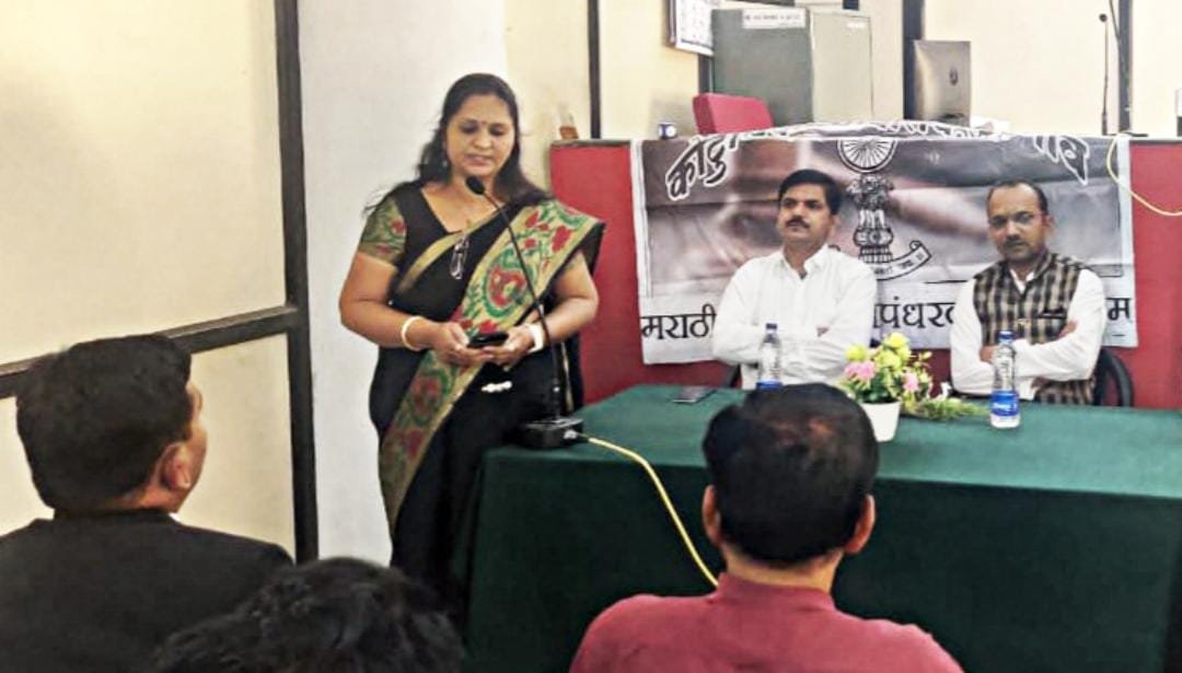 प्रतिनिधी: रवि कोळी कार्यक्रमाचे अध्यक्ष कौंटुंबिक न्यायालयाचे न्यायाधीश श्री रीतेश लिमकर साहेब हे होते सदर कार्यक्रमाचे सूत्रसंचालन समाजसेविका सौ.भारती कुमावत यानी केले सदर कार्यक्रमास न्यायालय प्रबंधक श्री रविन्द्र ठाकुर ,विवाह समुपदेशक श्री सचिन मोरे , तसेच विधिज्ञ , न्यायालयीन कर्मचारी वृंद व पक्षकार हे उपस्थीत होते कार्यक्रमाचे वक्ते श्री जगदिश बियाणी सर यांनी मराठी भाषेचा उगम कधीपासून झाला त्या बाबत ची सविस्तर माहिती व न्यायालयीन कामकाजात मराठी भाषेचे महत्व समजुन सांगितले मराठीचे खोलवर ज्ञान सरांनी अगदी सोप्या भाषेत कथन केले तसेच लिमकर साहेबांनी मराठीत जजमेंन्ट देण्याचे फायदे समजुन सांगितले व न्यायालयीन कामकाजात माराठी भाषेचा वापर हा सर्वसाधारण लोकांना कसा फायद्याचा असतो या बाबत विस्तृत माहिती दिली , अशा पध्दतीने कार्यक्रमाची सांगता करतांना आभार न्यायालयाचे वरीष्ठ लिपीक श्री नारायण पाटील यांनी मानले.