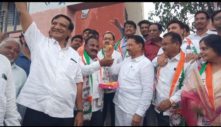 जळगाव: (पोलीस वृत्त- ऑनलाईन) राष्ट्रवादी काँग्रेस पार्टीचे राष्ट्रीय अध्यक्ष खासदार शरद पवार यांनी आज आपल्या राष्ट्रवादी काँग्रेस पार्टी अध्यक्ष या पदाचा राजीनामा दिला, हा राजीनामा पवार साहेबांनी तात्काळ मागे घ्यावा या मागणीसाठी संपूर्ण महाराष्ट्रातील कार्यकर्तीनी मागणी केली होती तरी आज दी. ५/५/२३ रोजी पवार साहेबांनी तमाम कार्यकर्त्यांच्या तीव्र भावना लक्ष्यात घेऊन तत्काळ दिलेला राजीनामा मागे घेतला व यापुढेही पवार साहेबच राष्ट्रस्वादी कांग्रेस पार्टीच्या राष्ट्रीय अध्यक्ष पदी कायम राहणार अशी घोषणा केल्यामुळे राष्ट्रवादी कांग्रेस पार्टी जळगाव महानगर तर्फे फटके फोडून व पेढे वाटप करूज जल्लोष साजरा करण्यात आला ह्या वेळी माजी कृषी व परिवहन मंत्री गुलाबरावजी देवकर व प्रदेश सरचिटणीस नामदेव चौधरी , प्रदेश चिटणीस एजाजभाई मलिक , महानगरअध्यक्ष अशोक लाडवांजरी, युवक अध्यक्ष रिकूचौधरी , वाल्मिक पाटिल, कल्पनाताई पाटिल, y.s.महाजन सुनील माळी,एजाज़ मलिक, सलीम इनामदार, किरण राजपूत, रमेश पाटिल, गौरव वाणी, अमोल कोल्हे , रहिम ताडवी , अनिल पवार , साहिल पटेल,रफिक पटेल, खाल्लील शेख, आकाश हिवारे, संजय चव्हाण,ज्युबेर खाटीक, प्रमोद पाटिल , रमेश बहरे हितेश जावळे विशाल देशमुख , इतर पदाधिकारी कार्यकर्ते सहभागी होते.