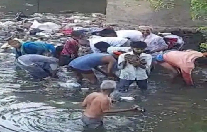 बिहार: मुफस्सिल पोलीस ठाण्याच्या मुरादाबादजवळील कालव्यातून मोठ्या प्रमाणात नोटा (रोख) मिळाल्याची माहिती मिळाली. शनिवारी अचानक लोकांना कळालं की, मुरादाबादच्या कालव्यात मोठ्या प्रमाणात रोकड टाकण्यात आली आहे, मग काय? याची माहिती मिळताच नोटा लुटण्यासाठी गर्दी झाली होती. आजूबाजूचे लोक पाण्यात उतरले आणि नोटांचे बंडल घेऊन पळू लागले.