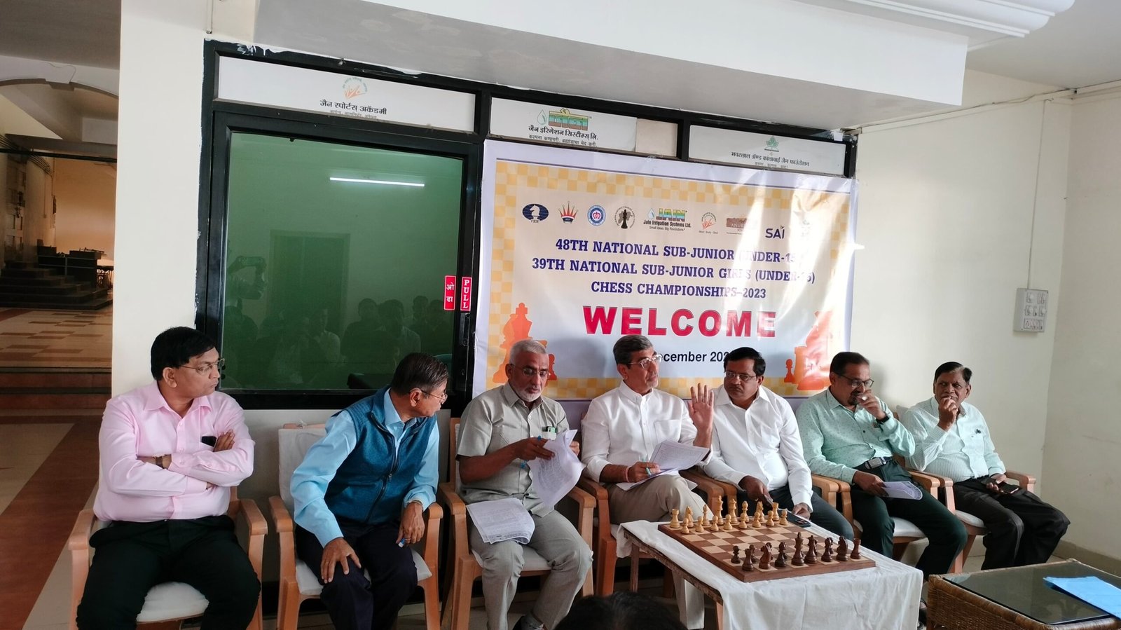 जळगाव दि. २३ (क्रीडा प्रतिनिधी) – जळगाव जिल्हा बुध्दिबळ असोसिएशन व जैन स्पोर्ट्स अकादमी यांच्या संयुक्त विद्यमाने तसेच महाराष्ट्र बुध्दिबळ असोसिएशन व अखिल भारतीय बुध्दिबळ महासंघ यांच्या मान्यतेने जळगाव येथील अनुभूती निवासी स्कूलच्या आवारात २७ डिसेंबर २०२३ ते ४ जानेवारी २०२४ या नऊ दिवसांच्या कालावधीत राष्ट्रीय सब-ज्युनिअर (१५ वर्षा आतील मुले व मुलींच्या) बुध्दिबळ स्पर्धेचे आयोजन करण्यात आलेले आहे.