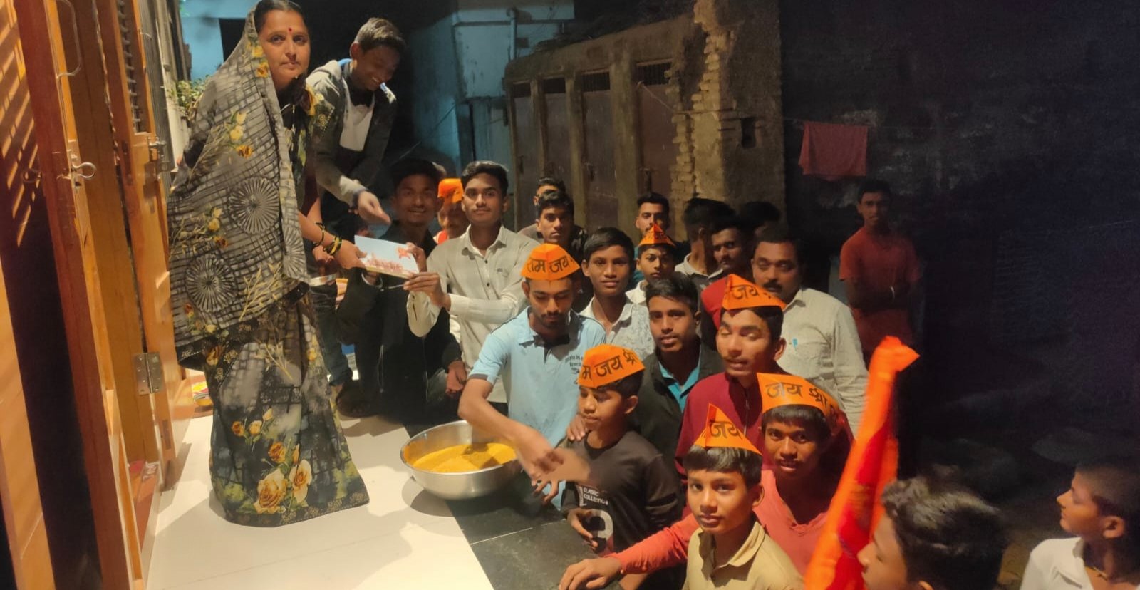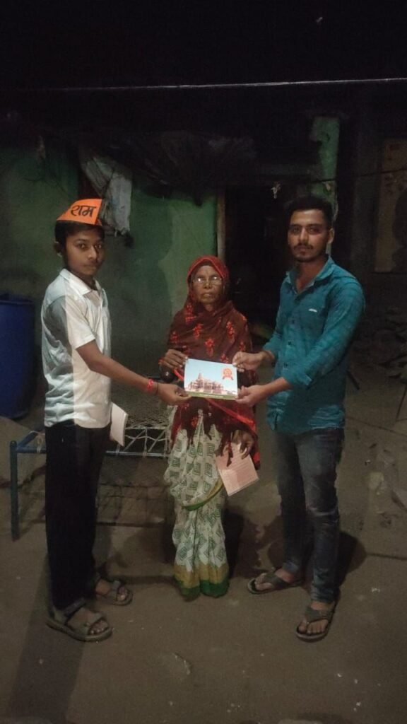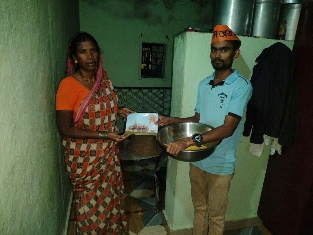 प्रथम मारुती मंदिरात उपस्थित कार्यकत्यांच्या हस्ते प्रभू रामाची व हनुमानाची आरती करण्यात आली. शिवाय अक्षतांचीही पूजा करण्यात आली. नंतर या पवित्र अक्षतांचे गावात वाटप करण्यात आले. अक्षता वाटप करतांना असंख्य कार्यकर्ते सहभागी झाले होते. अक्षतांचे वाटप करताना श्रीराम नामाचा जयघोष करण्यात आला.