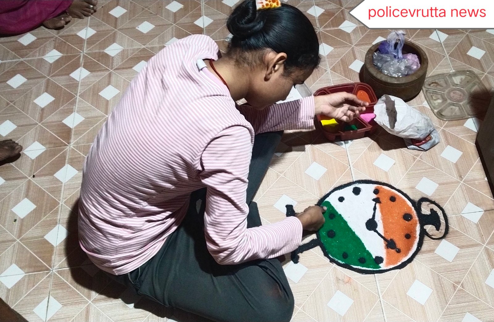 अमळनेर : पोलीस वृत्त न्यूज– अमळनेर मतदार संघातील तिरंगी लढाई होणार असुन राज्याचे लक्षवेधनारी निवडणूक हि अमळनेर मधून होणारा असून उमेदवार कार्यकर्ते जोमाने प्रसाराला लागले आहे. ‘ताई, माई, आक्का विचार करा पक्का, नीट देखिसंन मारा शिक्का’ तर या निवडणुकीत कोण बाजी मारणार जनतेचा कौल काही कळेना अनेक कार्यकर्ते आपापल्या माध्यमातून प्रचार करतांना दिसतं आहे. तालुक्यात कोणत्या दिशेला कोणते चिंन्ह कोणता उमेदवार चालणार ही येनारी वेळ ठरवणार आज दिवाळीनिमित्त एका तरुणीने स्वतःच्या घराच्या दरवाज्याजवळ चक्क घड्याळाचे चित्र साकारले आहे. आणि घड्याळाची वेळ दर्शवली आहे. घड्याळ वेळेवरच राहील ‘राष्ट्रवादी’ पुन्हा येईल. असा नारा तरुणीने दिला आहे. सत्तेत असलेल्या मंत्री आ. अनिल पाटील पुन्हा निवडून येतील व आमदार होतील लाडक्या बहिणीचा आशीर्वाद त्यांच्या पाठीशी आहे. याच सरकारने लाडक्या बहिणीचा विचार करा केला. आर्थिक मदत स्वरूपात का असेना खात्यावर वेळेवर पैसे मिळवून दिले. दिलेला शब्द पाळला याच पैशाने आज गोरगरीब जनतेची दिवाळी गोड झाली. म्हणुन यंदाची दिवाळी राष्ट्रवादीचे चिन्ह घड्याळ रांगोळी स्वरूपात साकारून दिवाळी साजरा केली. अंगणातून प्रचार करताना दिसतं आहे. लक्षवेध ठरणारी रांगोळी तरुणीने (लाडक्या बहिणीने) साकारली आहे. (संपादक – रजनीकांत पाटील)