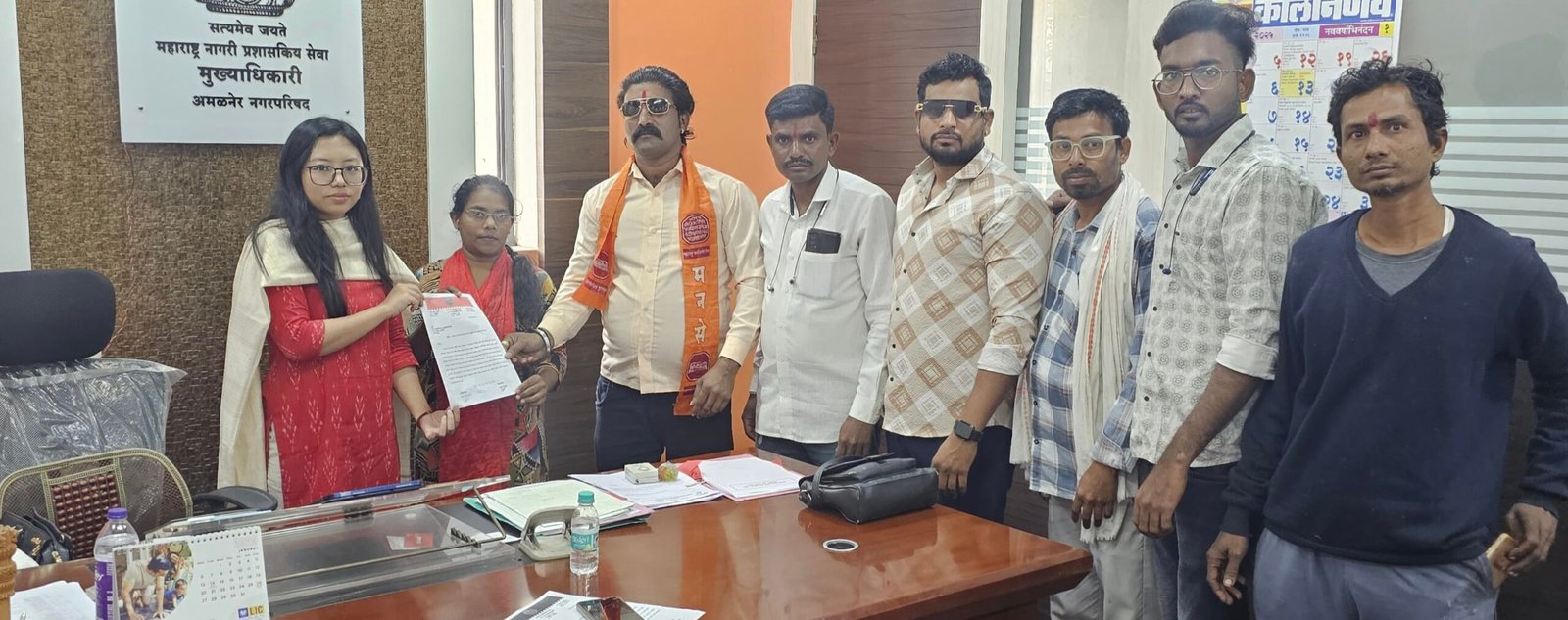 अमळनेर: पोलीस वृत्त न्युज – शहरातील भालेराव नगर मधील मुख्य रस्त्यावर पाण्याचा व्हालचा खड्ड्यावर बसविण्यात आलेली लोखंडी जाळी तुटल्याने नागरिकांच्या रहदारीच्या सुरक्षेचा मोठा धोका निर्माण झालेला आहे. व त्याठिकाणी अपघात होण्याची दाट शक्यता नाकरता येत नाही. तरी अमळनेर न.प. प्रशासन याकडे दुर्लक्ष करीत आहे. मात्र या मुख्य रस्तावरी रहदारीट नागरिक , विद्यार्थी तसेच ज्येष्ठ नागरिक यांच्या रहदारीचा वापर मोठ्या प्रमाणात असुन नगर पालिका या कडे दुर्लक्ष करीत आहे. दररोज या रस्तावरून हजारो वाहने वापरतात या जालीवरून अवजड वाहन गेल्यावरून सदरची जाळी तुटलेली. तरी दुचाकीवरून जाणारे नागरिक व विद्यार्थी यांना धोका निर्माण झालेला आहे. याकडे मा. प्रशाकीय अधिकारी यांनी सदरच्या खड्ड्यात ताबडतोब जाळी बसवून सहकार्य करावे असे निवेदन देण्यात आल. निवेदन देताना तालुकाध्यक्ष संदीप पाटील (काटे) शहराध्यक्ष धनंजय साळुंखे म न वि सेना जिल्हा उपाध्यक्ष अरुण गव्हाणे युती तालुकाध्यक्ष किरण ताई तालुका उपाध्यक्ष निलेश चौधरी शहर सचिव निलेश भावसार मांडळ गट अध्यक्ष श्यामकांत बडगुजर व मनसे सैनिक उपस्थित होते