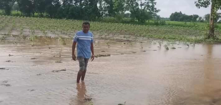 गेल्या आठवड्यात अमळनेर तालुक्यातून पातोंडा परिसरात शंभर मिमीच्या वर पाऊस पडत आहे. रिमझिम पावसाने शेतामध्ये सर्वत्र तण वाढले होते. परिणामी मजुरांची टंचाई भासत होती. म्हणून सकाळ संध्याकाळ पर्यंत मजूर शेतामध्ये दिसून येत होते.उन्हाळा सारखे ऊन, उष्णतेच्या प्रचंड लाटा व घामाने नागरिक त्रस्त झाले होते. पावसाच्या विश्रांतीत शेतकऱ्यांना शेतीची मशागती करता आली. निंदणी, खत देणे,फवारणी करणे आदी कामात शेतकरी व्यस्त होते. यामुळे पिके हिरवीगार व बहार झालेली दिसत होती.पण सोमवारी मध्यरात्री झालेल्या ढगफुटीसदृश्य अतिवृष्टी पावसाने झोडपले आणि एका रात्रीत हजारो हेक्टर शेताशेतामध्ये पाणी साचले आणि संपूर्ण पिके पाण्याखाली गेली.बागायती कापूस, जिरायत कापूस, मूग, उडीद, मका व इतर पिकांचे मोठ्या प्रमाणावर नुकसान झालेलं आहे. शेतकऱ्यांनी महागडी बियाणे,दुबार पेरणी, मशागती, खते, फवारणी, मजुरीसाठी मोठा खर्च केला असून आलेल्या या अस्मानी संकटाला तोंड कसे द्यायचे असा प्रश्न शेतकऱ्यांना भेडसावू लागला आहे.
