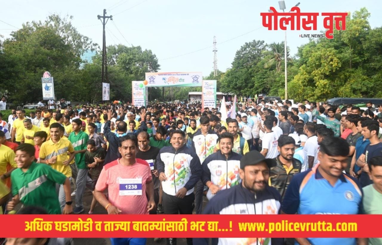 जळगाव पोलीस वृत्त- देशाच्या स्वातंत्र्याच्या अमृत महोत्सव वर्षानिमित्ताने देशभर विविध उपक्रम राबविले जात आहेत. त्याच अनुषंगाने जळगांव जिल्हा पोलीस दल व जिल्हा प्रशासनाच्या वतीने रविवारी अमृत दौडचे आयोजन करण्यात आले होते. दौडची सुरुवात काव्यरत्नवली चौक येथून करण्यात आली होती. या वेळी जैन इरिगेशनचे अध्यक्ष अशोक जैन, जिल्हाधिकारी अभिजित राऊत, पोलीस अधीक्षक डॉक्टर प्रवीण मुंढे, अपार पोलीस अधीक्षक चंद्रकांत गवळी, सहायक पोलीस अधीक्षक कुमार चिंथा, सहायक पोलीस अधीक्षक(गृह) संदीप गावित, उपजिल्हाधिकारी रवींद्र भारदे, जिल्हा क्रीडा अधिकारी मिलिंद दीक्षित, सर्व पोलीस स्टेशनचे प्रभारी अधिकारी आदी मान्यवर उपस्थित होते.