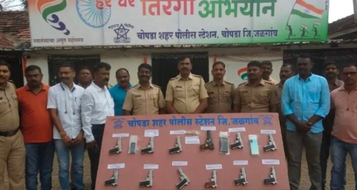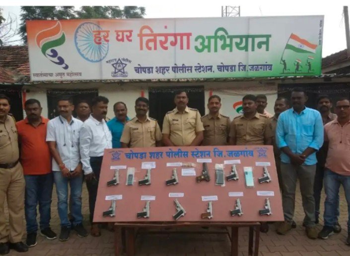 या संदर्भात अधिक असे की, दि. 22 ऑगस्ट 2022 रोजी सांयकाळी सव्वासहा वाजेच्या सुमारास चोपडा बस स्थानक( Bus stand) परिसरात संशयित आरोपी अमीतकुमार धनपत धानिया (वय 30 रा. भागवी ता. चरखी दादरी जि. भिवानी, हरीयाणा) व शनेशकुमार रामचंदर तक्षक (वय 32 रा. भागवी ता. चरखी दादरी जि. भिवानी, हरीयाणा) यांच्याकडे 2 लाख ६० हजार किमंतीचे १२ गावठी बनावटीचे पिस्टल (कट्टा) मॅग्झीनसह तसेच हजार रुपये किमंतीची 5 पिवळया धातूचे जिवंत काडतूस हैं कोणास तरी विक्री करण्यासाठी आणले होते. परंतू पोलिसांनी दोघांना सापळा रचून शिताफीने अटक केली आहे. दोघं संशयित आरोपींवर पो.हे.का किरण गाडीलोहार( Kiran gadi lohar) यांच्या फिर्यादीवरून भारतीय हत्यार कायदा कलम 3/25, 7/25 प्रमाणे गुन्हा दाखल करण्यात आला आहे. दोघं संशयित आरोपींजवळून १२ गावठी बनावटीचे कट्टे, ५ जिंवत काडतूस व ३ मोबाईल फोन असा एकुण २७७ हजाराचा मुद्देमाल जप्त करण्यात आला आहे. घटनास्थळी चोपडा शहर पोलीस स्टेशनचे पोलीस निरिक्षक अवतारसिंग (AvatarSingh Chavan) चव्हाण, सहा. पोलीस निरिक्षक अजित साळवे (Ajit salave) व संतोष चव्हाण (Santosh Chavan)यांनी भेट दिली. दि. 18 ला सुद्धा अवैध शस्त्रांसंबंधी अशीच कारवाई करण्यात आली होती. त्यावेळी 6 गावठी कट्टे व 30 जिंवत काडतुसे जप्त करण्यात आली होती. सदर कारवाई पोलीस अधीक्षक डॉ. प्रविण मुंढे, अपर पोलीस अधीक्षक रमेश चोपडे, सहा. पोलीस अधीक्षक कृषीकेश रावले यांच्या मार्गदर्शनाखाली व पोलीस निरीक्षक अवतारसिंग चव्हाण यांच्या नेतृत्वाखाली पोलीस उपनिरिक्षक घनश्याम तांबे, पोलीस नाईक संतोष पारधी, संदिप भोई, किरण गाडीलोहार, पोकाँ. प्रमोद पवार, प्रकाश मथुरे आदिंच्या पथकाने केली. सदर गुन्ह्याचा पुढील तपास पोलीस उपनिरिक्षक घनश्याम तांबे (Ghanshyam tambe) हे करीत आहेत.