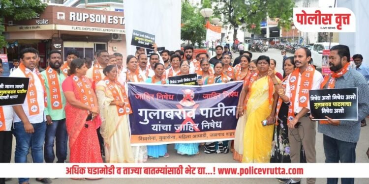 महाराष्ट्र राज्याचे पाणीपुरवठा व स्वच्छता मंत्री, तसेच जळगाव जिल्ह्याचे पालकमंत्री गुलाबराव पाटील यांनी स्त्रीरोग तज्ञ डॉक्टर तसेच महिलांचे अपमान करणारे वक्तव्य केल्याने युवासेना, शिवसेना व शिवसेना महिला आघाडी तर्फे नेहरू चौक जळगाव येथे निषेध करण्यात आला.